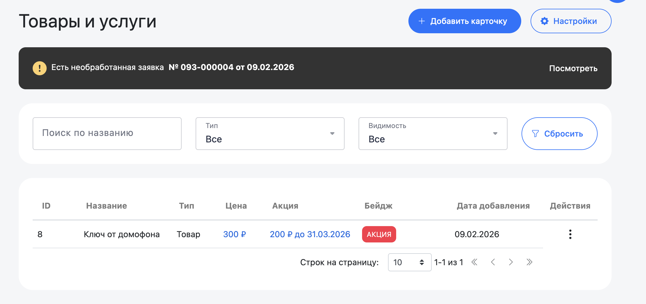 "Товары и услуги" — это новый функционал в мультиверсивной платформе. Вы сможете самостоятельно создавать карточки товаров и услуг, получать по ним заявки от пользователей в мобильном приложении и обрабатывать их в реальном времени.