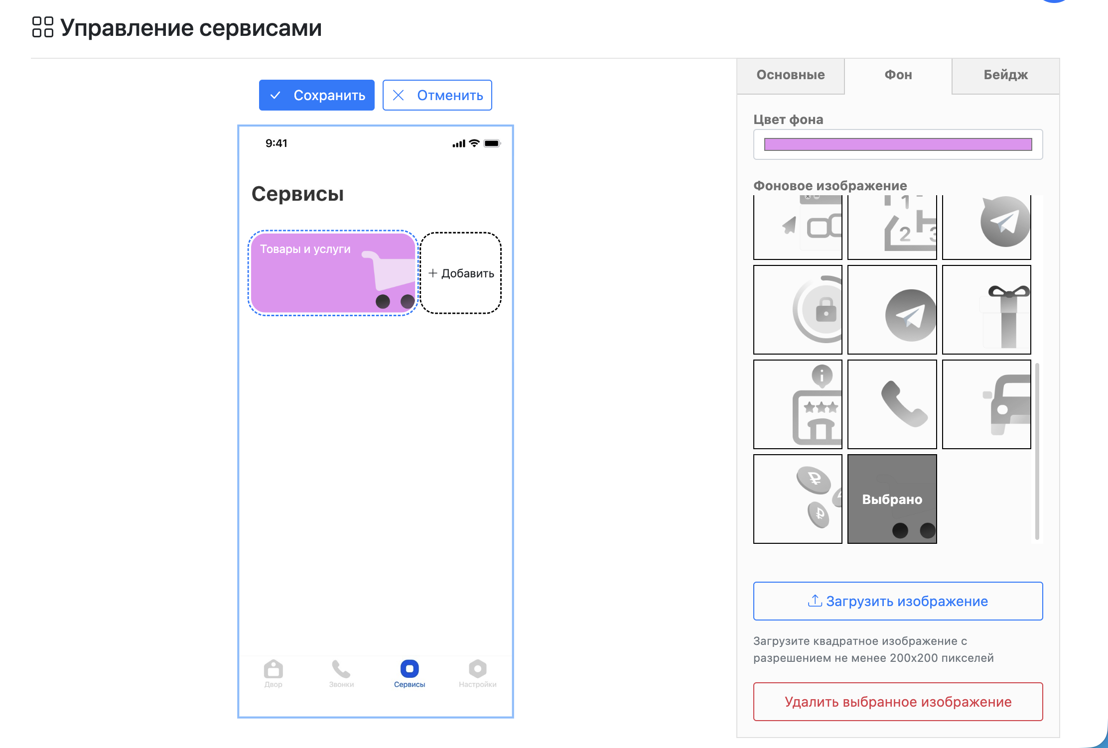 Выберите цвет фона, фоновое изображение, оформите бейдж (при необходимости) и нажмите кнопку "Сохранить". Данная карточка появится в приложении у всех ваших пользователей.